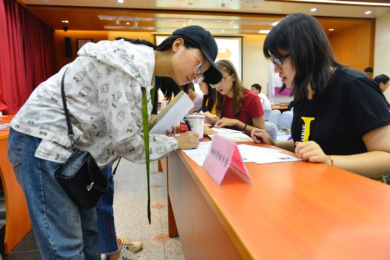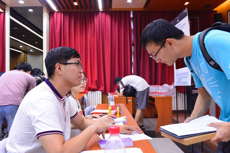 清晨突如其来的大雨没能阻挡19级新生们对研究生新生活的向往,早早出现在了报到现场并开始办理手续、领取物资。