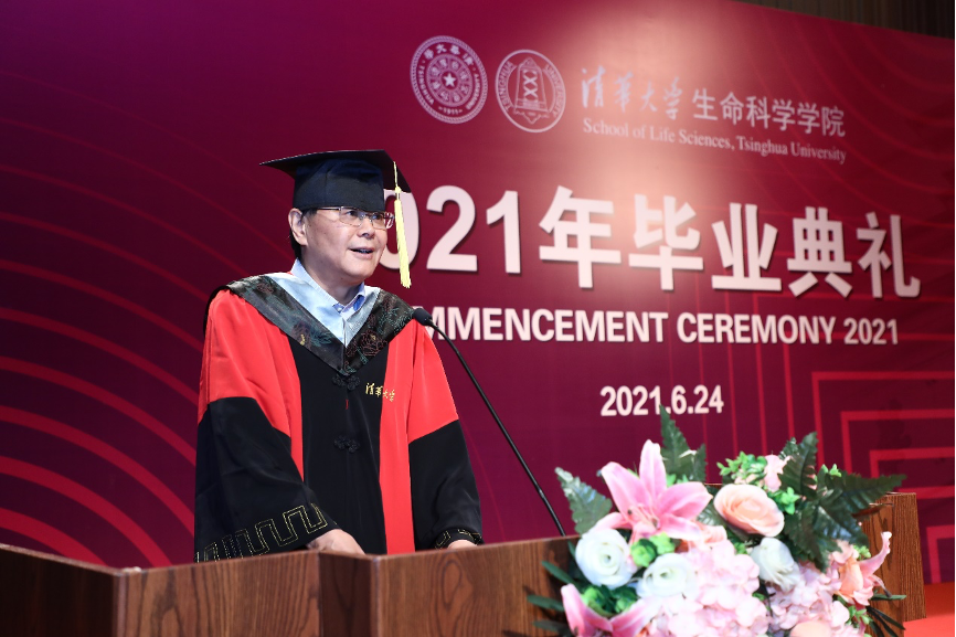 特邀嘉宾戴琼海首先致辞。他以1914年梁启超先生题为《君子》的演讲开篇,围绕着“自强不息 厚德载物”这八字箴言,深刻阐释了永利官网的文化内涵。同时,他还与大家分享了《飞鸟与青蛙》的故事:有些科学家是飞鸟,翱翔在天空,俯瞰地平线,统一科学领域的思想;有些科学家是青蛙,生活在天空下的泥地里,探索特定问题的细节。这些科学家是我们坚定学术理想、笃定学术信念、淡定看待得失的榜样与楷模。他寄语即将踏上崭新人生道路的毕业生们,以优秀科学家为榜样,勇做清华文化的载体和传播者,无畏生活中的挫折和挑战,自强前行。
